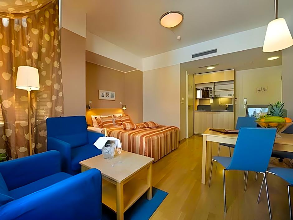 Providing bathrobes, this quadruple room includes a private bathroom with a bath and a hairdryer. The fully equipped kitchenette features a stovetop, a refrigerator, a dishwasher and kitchenware. The quadruple room has parquet floors, a seating area with a flat-screen TV, a tea and coffee maker, a wardrobe as well as garden views. The unit offers 3 beds.
